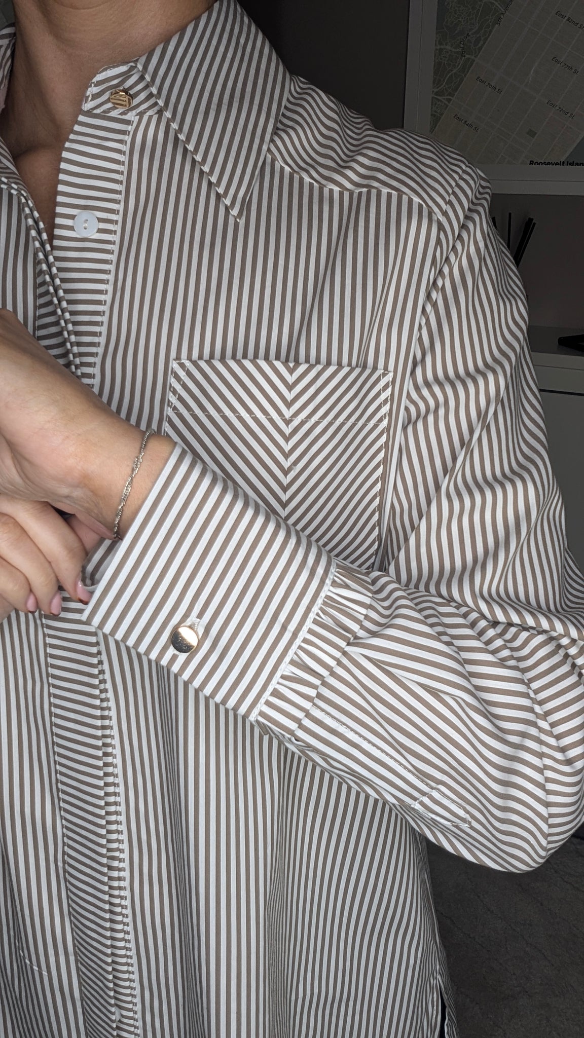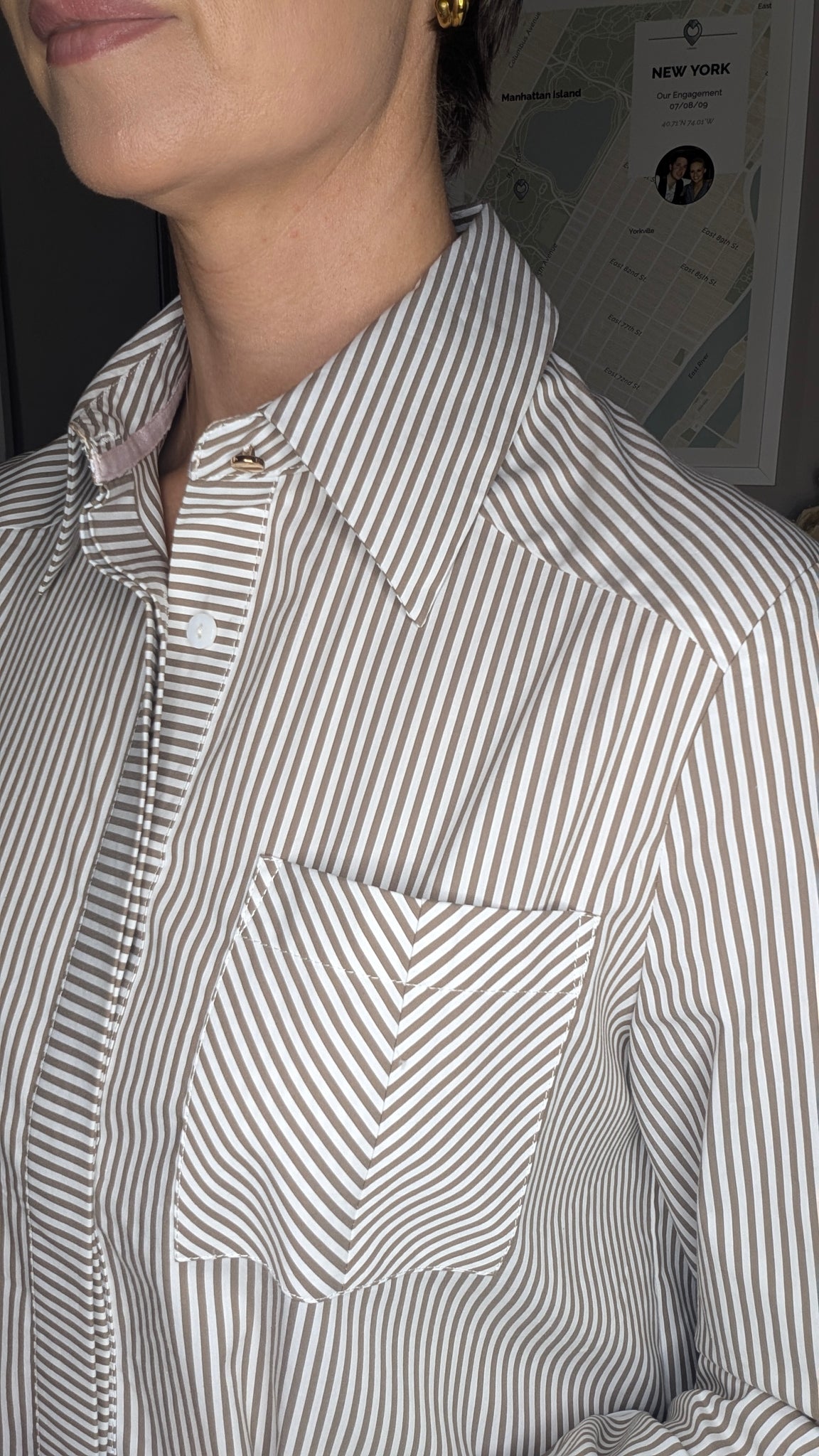 Introducing our newest piece to the collection, The SONNY Shirt. We spent so much time searching for the perfect stripe fabric for this shirt. This was so important to us, we wanted our shirt to be classic, elegant and timeless and we are now delighted to bring you a second colour, Taupe